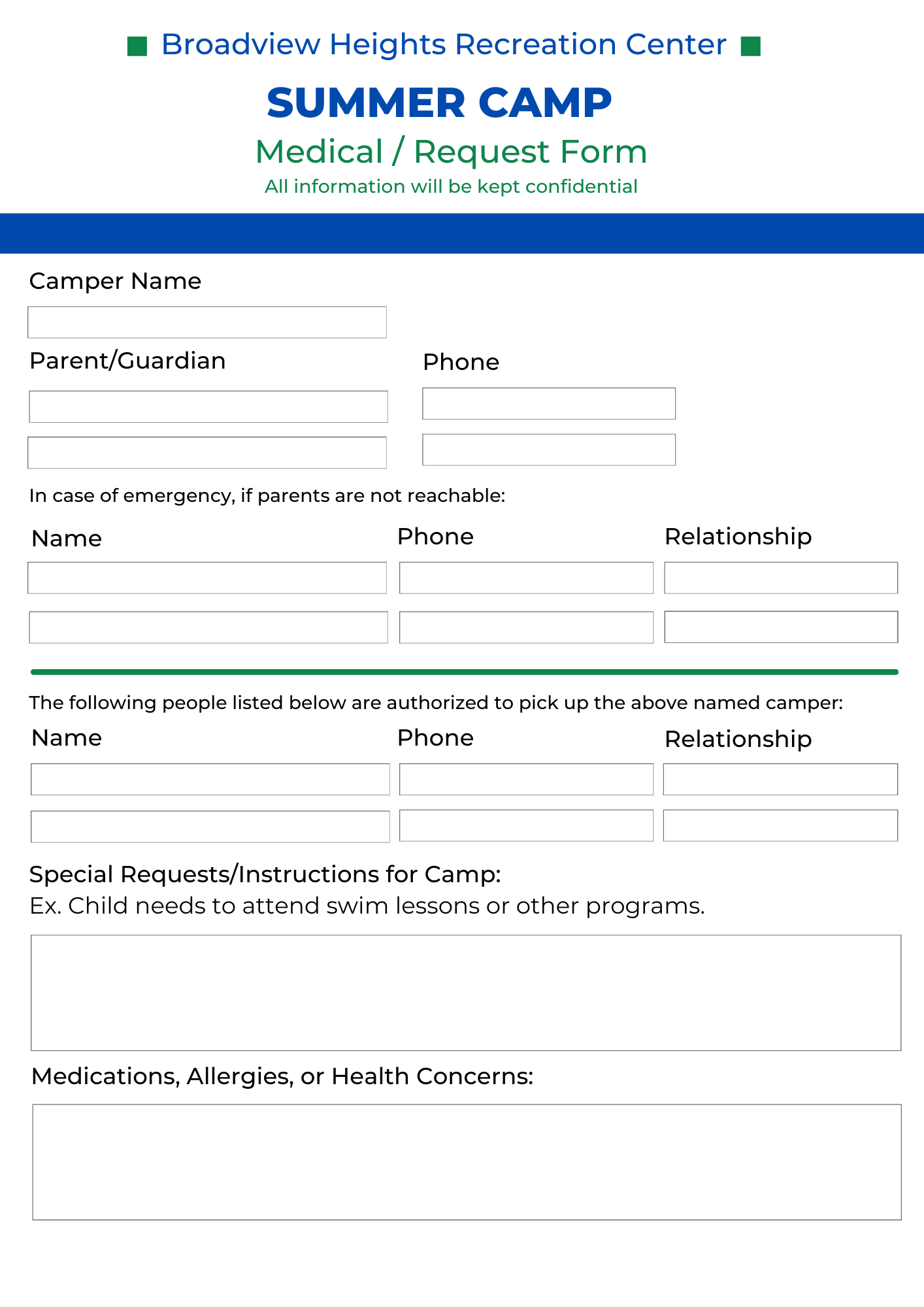 - If a child cannot attend camp due to a medical condition, a cancellation request must be accompanied by a doctor's note. In such cases, a household credit will be issued for the summer camp missed due to medical reasons.